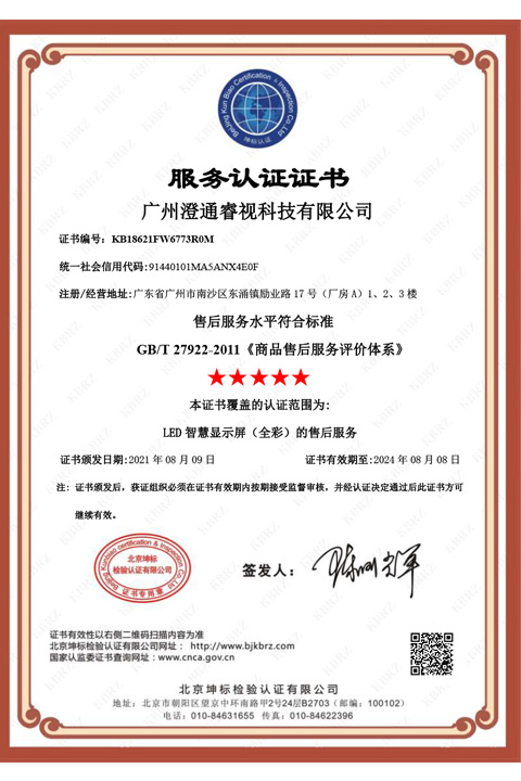 廣州澄通睿視科技有限公司FW服務(wù)認(rèn)證中文證書