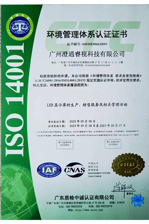 環(huán)境管理體系認(rèn)證證書中文