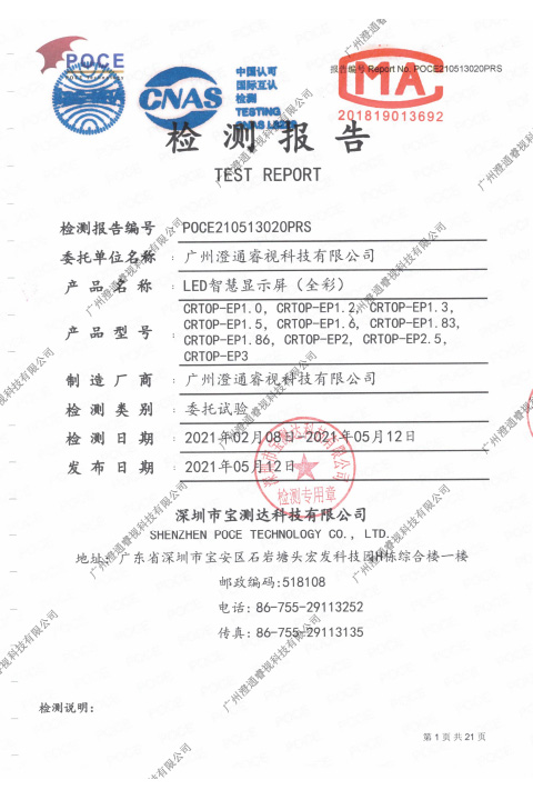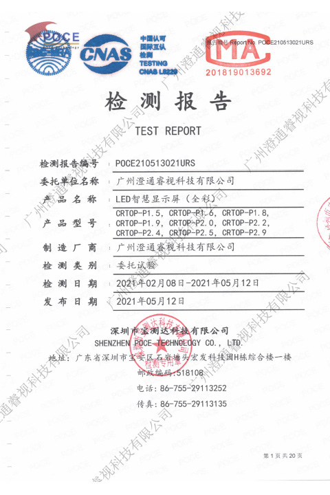 P1.5625LED-顯示屏-質(zhì)檢報告
