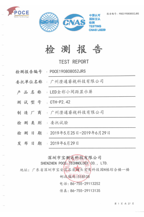 P1.9LED-顯示屏-質(zhì)檢報告